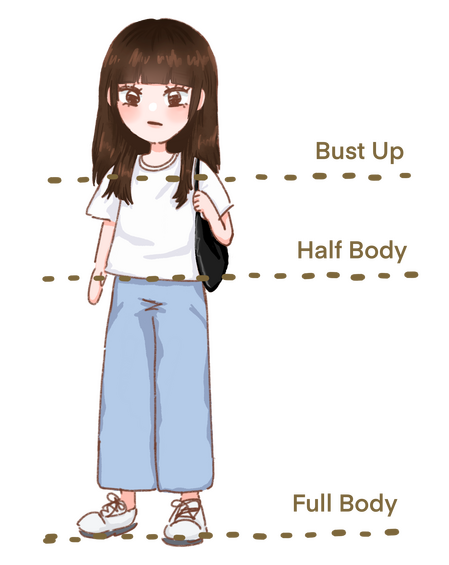 | Half body | 200 / character | 250 / character | 400 / character |